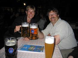 We spent our evening on a second walking tour - the brewery tour. Here we learned about the history of Bavarian beer making (started by the monks) and had the opportunity to visit and taste beer at three of the six 'official' breweries of Munich. This was enjoyable, and we ended up the night at the most famous beer hall, the Hofbrauhaus, where the all beer is served in 1 litre mugs - almost needed two hands to lift. Guess I would need to shape up if this was to become my full time job. Our tour group stayed until they shut down the place and got kicked out ...