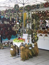 Today (Monday) we woke up to our first day of cloudy, cooler and rainy weather - guess we were due. So we took it easy and spent our time touring the local market (Viktualien Markt) and climbing the 300 some steps up the St. Peter's Church to get pictures of the Frauen Church and New Town Hall, and the Marienplatz (main city square). Of course we also captured a picture of the Munich Maypole - apparently there is a Maypole in each German city.