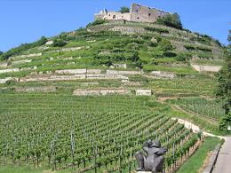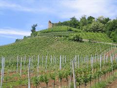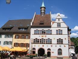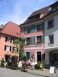 We drove to Staufen, Germany today, sticking primarily to the autobahn until about 40 km outside, where we took a scenic detour through the vineyards surrounding the Staufen area. We found our accommodations at the Hotel Hirschen easily (thanks to the GPS which directed us correctly around the one-way streets, and missed the pedestrian only streets). The weather was really hot today, as it was already 28 degrees when we arrived in the early afternoon, so we just walked around this quaint town, and enjoyed the shaded cafes for refreshments.