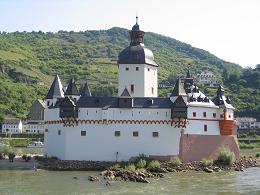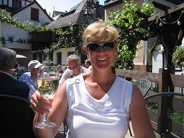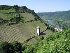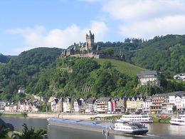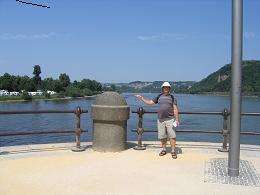 Monday morning we arose early to catch a train to Bingen to take the KD Cruise line down to Koblenz (about a 3 ½ hour river cruise) to leisurely enjoy the sun, water, vineyards and castles. Today was my day to constantly move from side to side and take way too many pictures of castles. This river cruise is very easy to follow, as there are markers every km of the way, and using our guide book (Rick Steve’s) we could read a short blurb about each castle and learn the name. (This really helped doing a log of the zillion pictures I took).