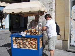 After walking by the wall of art work, Scott off-loaded all of our change with the bun vendor - these guys are everywhere and some would even sell you a bagel necklace (kids seem to love these!).